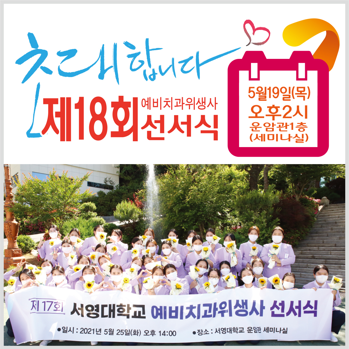서영대학교 제 18회 예비치과위생사 선서식 안내입니다.