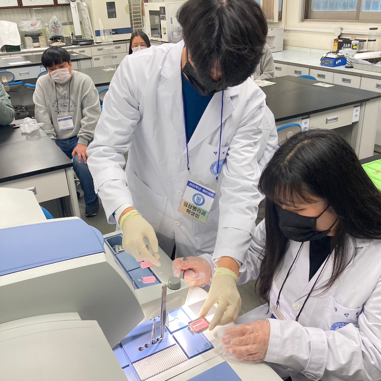 예비대학 프로그램에서는 학과소개. 교수님 소개, 학과의 장점 및 비전을 안내하였고, 각 실험실습실에서 임상병리사의 업무(혈액, 수혈 검사, 조직병리학검사, 미생물검사, 검시조사)를 직접 시연하고, 체험해 볼 수 있는 기회를 마련하였습니다. 각 검사의 시연 및 체험활동은 교수님들 지도하에 ABO학술동아리 학생들이 참여하여 더욱 더 큰 의미가 있었습니다.
