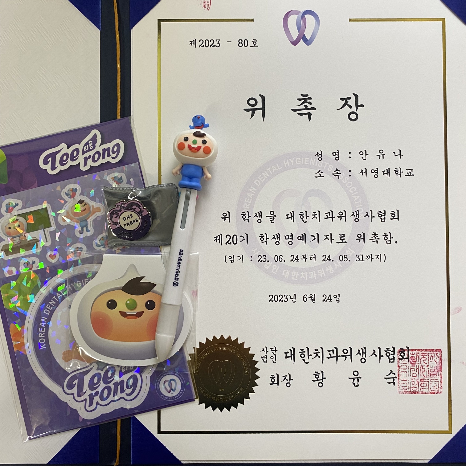 2학년 안*나 학생이 제 20회 대한위생사협회 명예기자로 선발되었습니다^^