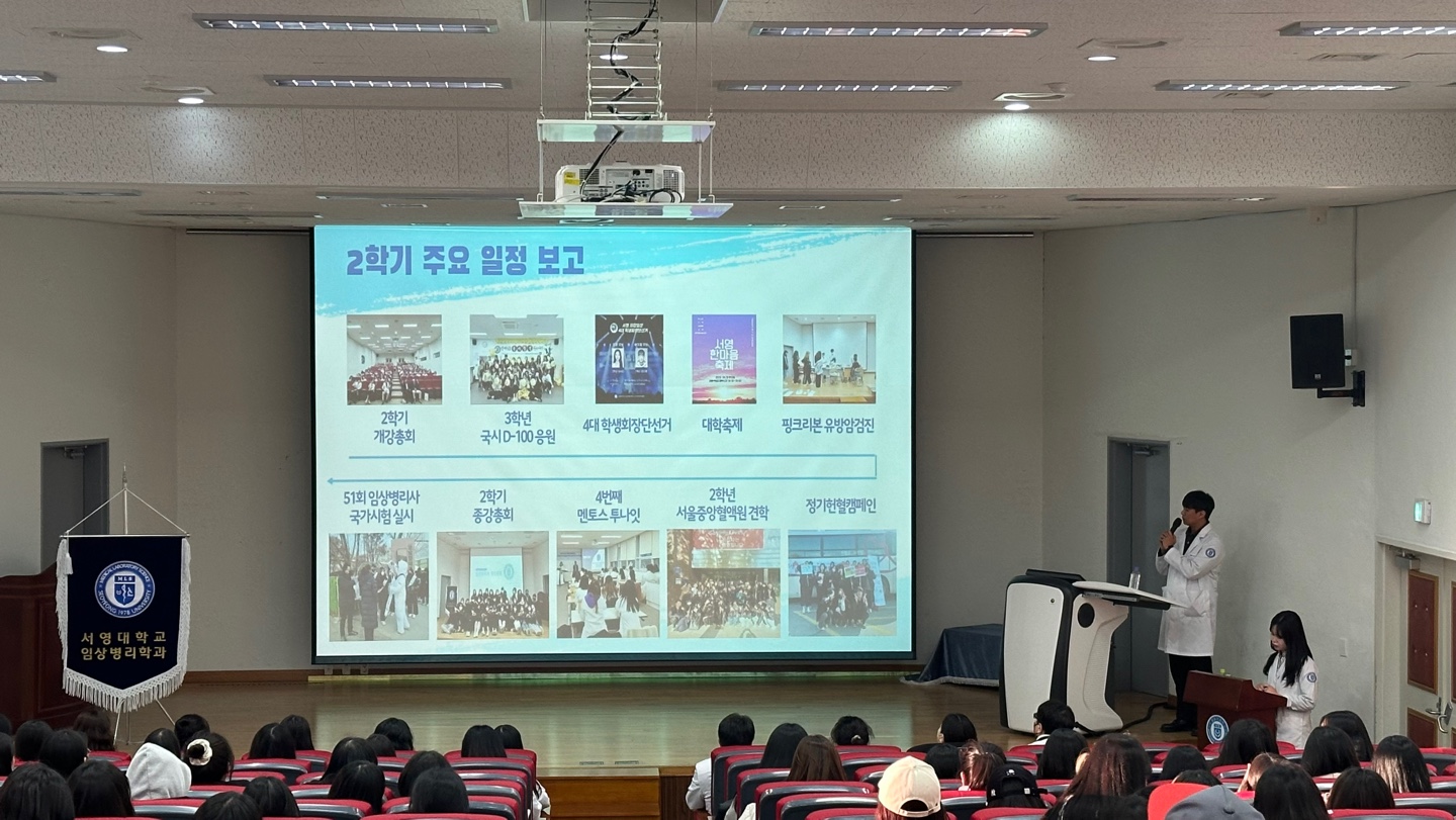 최강임상 4대 학생회 부학회장인 23학번 강지원 학생의 사회로 진행된 종강총회에서 2학기 주요 일정을 돌아보았다.