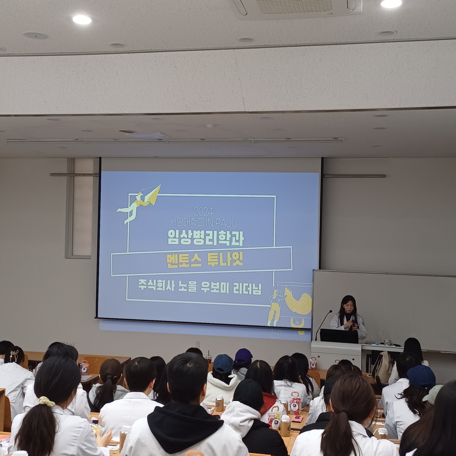 이 날, 1학년 재학생들은 비의료기관 스타트업에서 임상병리사의 역할, 다양한 진출할 수 있는 분야에 대해 들을 수 있었습니다. 또한, 예비 임상병리사에게 진로를 선택하는데 있어서 필요한 세심한 조언을 해주셨습니다.
