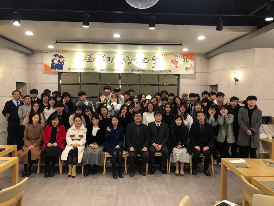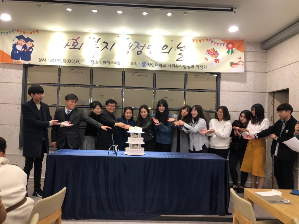 2019 사회복지행정과에서 사회복지행정인의 날 행사를 진행하였습니다. 많은 교수님들과 많은 2학년분들이 참석하셔서 사회복지행정인의 날을 함께 해주셨습니다.