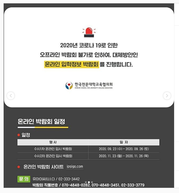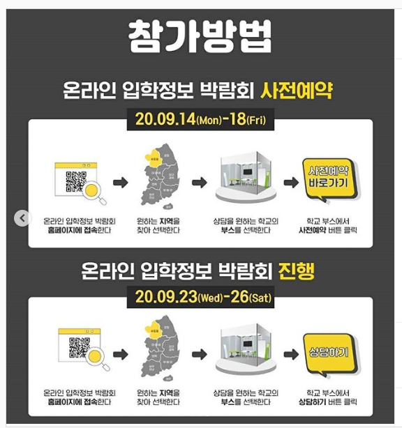 코로나로 인해 오프라인으로 진행하지 못하여 온라인으로 입학정보 박람회가 열립니다
