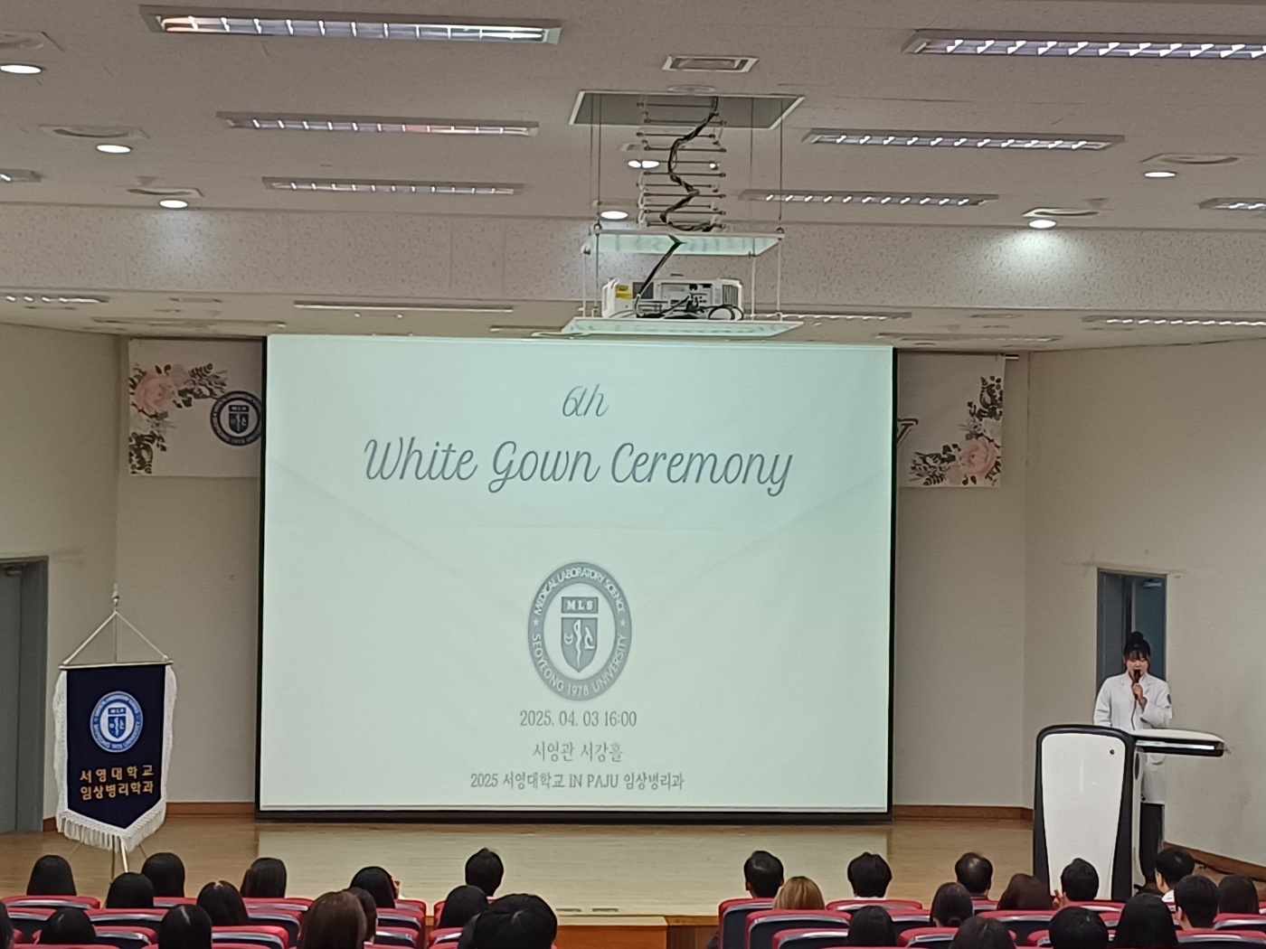 O. 이날 진행된 제6회 "White Gown Ceremony는 임상병리학과 1학년 재학생 총 82명이 참여하였다. 총 82명의 예비 임상병리사들은 각자의 이름이 새겨진 화이트 가운과 명찰을 수여 받고, "임상병리사 윤리강령"을 낭독하며 박애와 봉사의 정신으로 국민 건강에 이바지할 것을 다짐하는 시간을 가졌다. 또한 행사 후에는 임상병리사 역할에 대한 이해를 높이고 경쟁력을 갖춘 전문성 있는 인재로 성장할 수 있는 발판을 마련하고자 인천광역시 임상병리사회 채희영 회장이 진행하는 특강을 경청하는 시간을 가졌다.